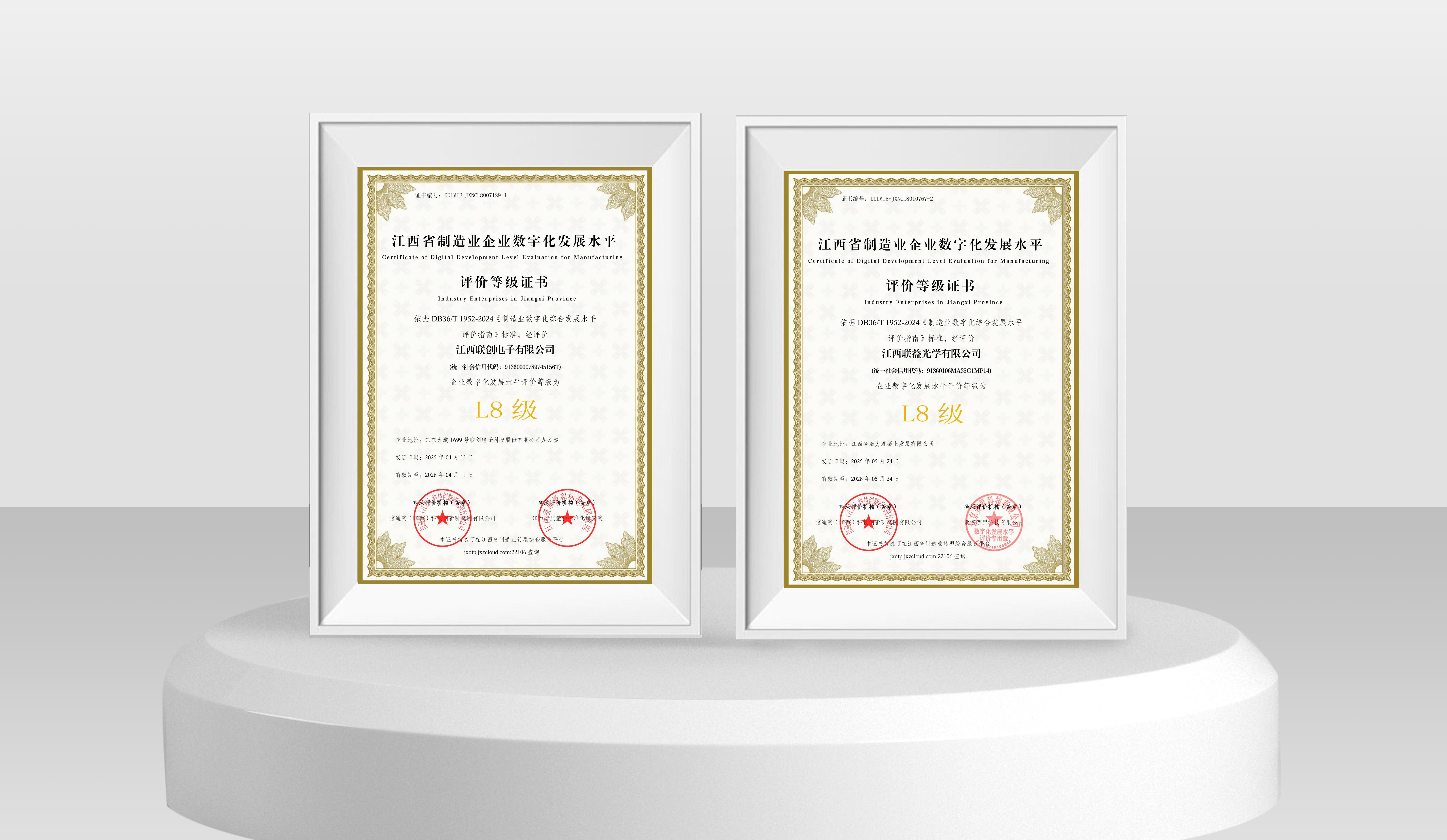 近日,联创电子科技股份有限公司旗下杏彩体育-(官方)APP下载,(以下简称江西联创)与江西联益光学有限公司(以下简称江西联益)凭借深度集成与创新应用能力,在江西省制造业企业数字化发展水平等级评价中双双达到L8级水平,标志着两家企业在数字化转型领域已跻身全省“集成提升阶段”最高水平,为全省制造业智能化升级树立新标杆。